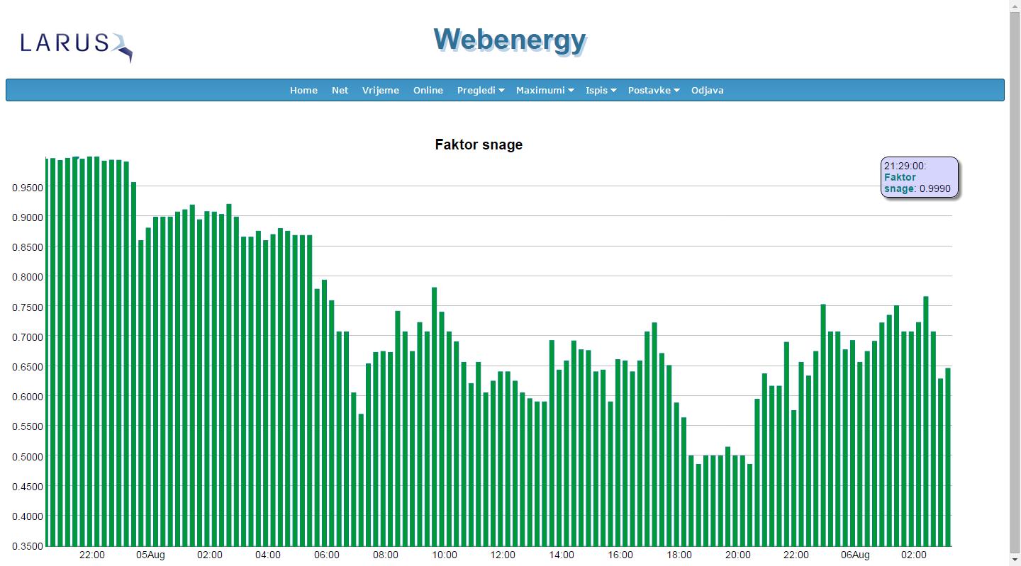 Grafički prikaz faktora snage u 15 minutnom periodu.