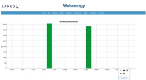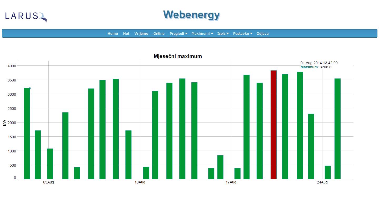 Grafički prikaz dnevnih maximuma u željenom mjesecu. Najveća potrošnja u toku mjeseca (mjesečni maximum) prikazana je crvenom bojom.
